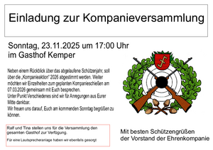 Einladung zur Kompanieversammlung der Ehrenkompanie am 23.11.